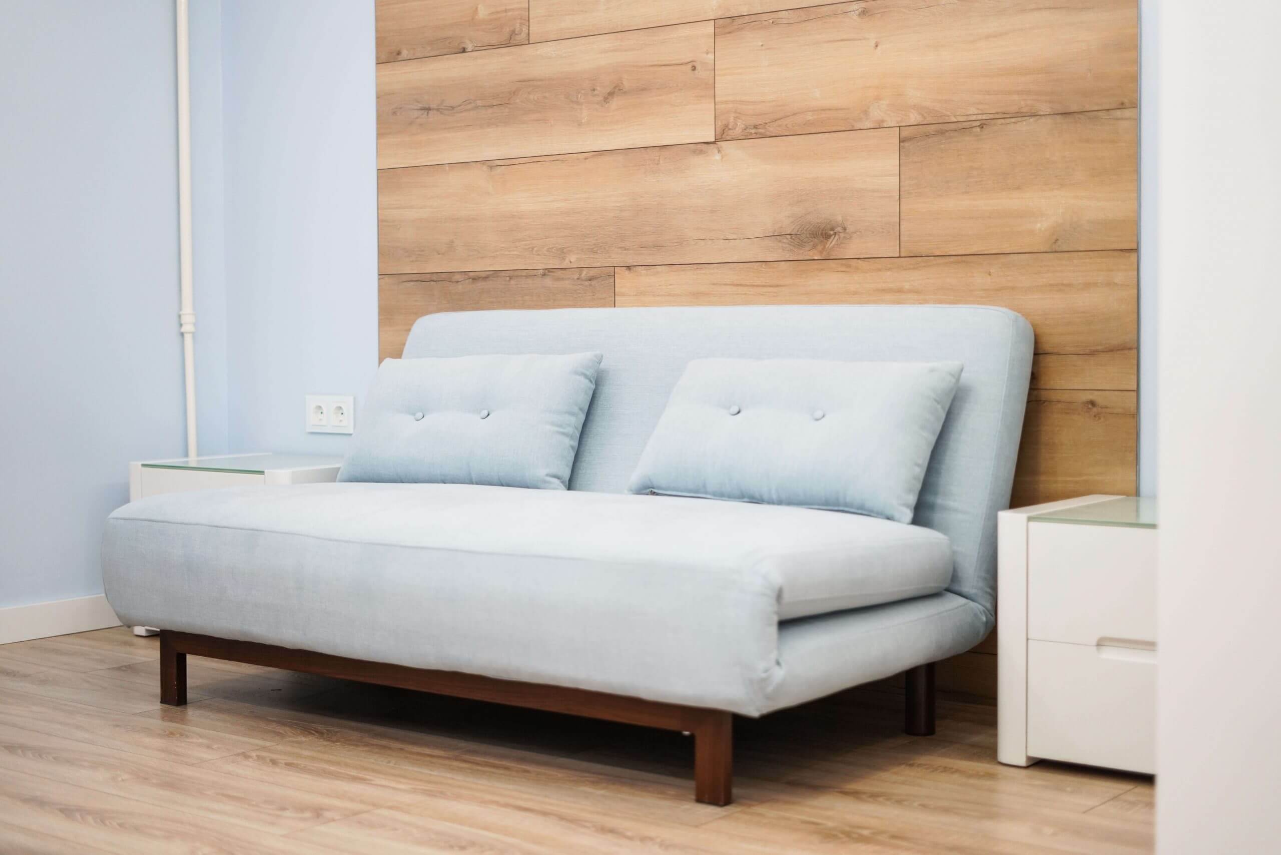 - Стена декорирована полиуретановыми панелями